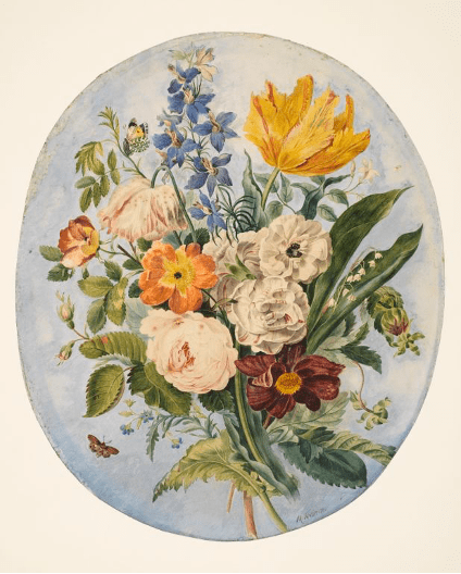 Moser, Mary Bouquet of Flowers. Watercolor,etc. 1780. Photo ©The Courtauld. (Samuel Courtauld Trust) The Courtauld, London. https://gallerycollections.courtauld.ac.uk/object-d-1952-rw-4446
